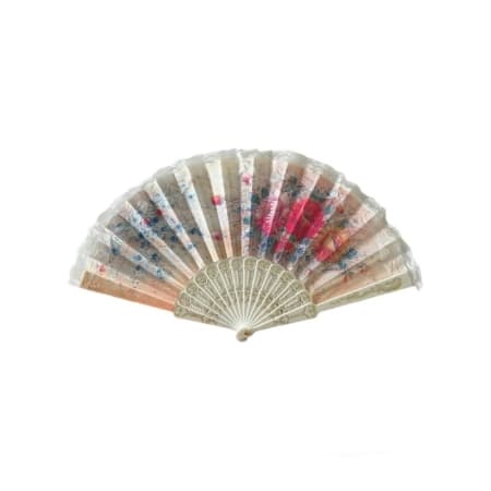 Βεντάλια πλαστική λευκή με λουλούδια 23cm