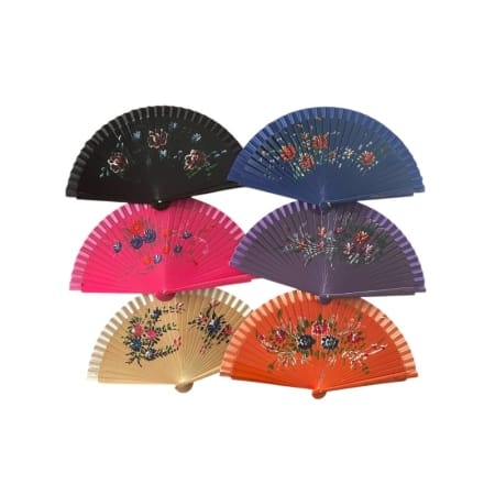 Βεντάλια ξύλινη με λουλούδια 23cm