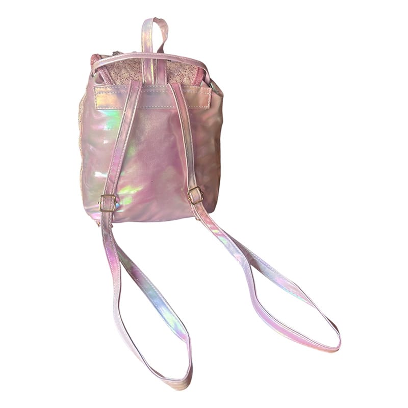 Παιδική τσάντα πλάτης γυαλιστερή με 5 πολύχρωμα λουλουδάκια, σε διάφορα χρώματα. Οι διαστάσεις της είναι 23x20x10.