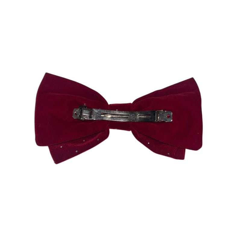 Μπαρέτα μαλλιών, με βελούδινο φιόγκο με διακριτικά στρας, σε διάφορες αποχρώσεις. Διαθέτει δυνατό κράτημα και δεν ταλαιπωρεί την τρίχα των μαλλιών. Τα αξεσουάρ αυτά των μαλλιών συνδυάζονται εύκολα με κάθε σου ντύσιμο. Δημιουργήστε μια μοναδική εμφάνιση και στολίστε τα μαλλιά σας με μια σικάτη μπαρέτα μαλλιών.