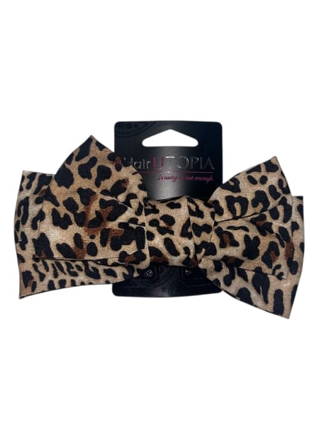 Μπαρέτα μαλλιών, με φιόγκο με λεοπάρ σχέδια, σε διάφορες αποχρώσεις. Διαθέτει δυνατό κράτημα και δεν ταλαιπωρεί την τρίχα των μαλλιών. Τα αξεσουάρ αυτά των μαλλιών συνδυάζονται εύκολα με κάθε σου ντύσιμο. Δημιουργήστε μια μοναδική εμφάνιση και στολίστε τα μαλλιά σας με μια σικάτη μπαρέτα μαλλιών.