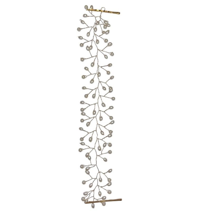 Νυφικό αξεσουάρ μαλλιών με μεταλλικό σύρμα ντυμένο με λαμπερές μικρές πέρλες σε σχέδιο σαν φυλλαράκια. Διατίθεται σε χρυσό και ασημί χρώμα.