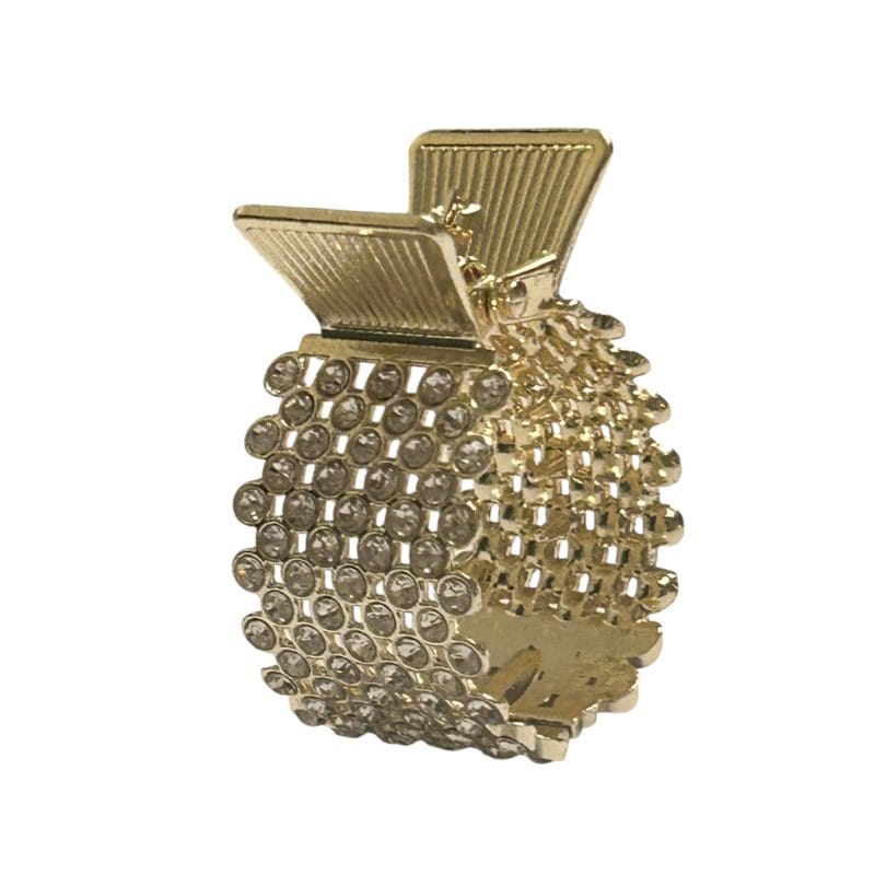 Γυναικείο μεταλλικό κλάμερ μαλλιών με μικρά διακριτικά στρας, 4εκ. Διατίθεται σε χρυσό και rose gold χρώμα.