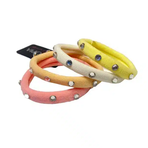 Λαστιχάκια μαλλιών με στρας, σε διάφορες αποχρώσεις. Τα συγκεκριμένα λαστιχάκια διαθέτουν μεγάλη ελαστικότητα και δυνατό κράτημα, καθώς δεν ταλαιπωρούν την τρίχα των μαλλιών. Αναδεικνύουν και το απλό χτένισμα. Η συσκευασία περιέχει 4 τεμάχια.