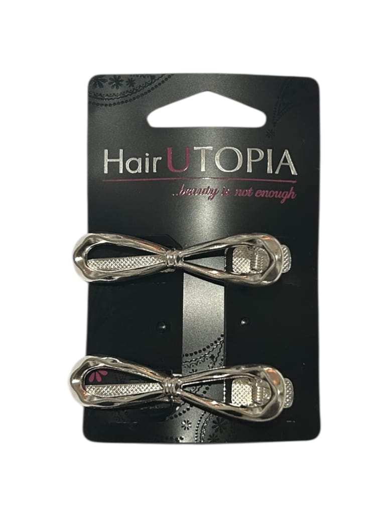 Γυναικείο μεταλλικό μανταλάκι για τα μαλλιά με σχέδιο φιόγκο. Τα συγκεκριμένα γυναικεία κοκαλάκια διαθέτουν σταθερό και δυνατό κράτημα. Ένα μανταλάκι μαλλιών είναι ένα ευέλικτο και πρακτικό αξεσουάρ που μπορεί να προσθέσει στυλ και κομψότητα σε κάθε χτένισμα. Είτε θέλετε να προσθέσετε λάμψη σε μια ειδική περίσταση είτε απλά θέλετε να αναβαθμίσετε το καθημερινό σας στυλ, αυτό το μανταλάκι μαλλιών είναι η τέλεια επιλογή. Διατίθεται σε 2 χρώματα.