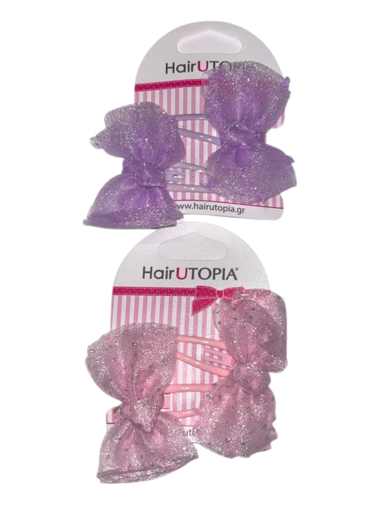 Παιδικό κλιπ για τα μαλλιά με φιογκάκι από αστραφτερό τούλι. Διαθέτει κλιπ-κλακ κλείσιμο και δυνατό κράτημα. Χαρίστε στα μικρά σας κορίτσια στυλ και λάμψη στα μαλλιά τους, με τα χρώματα και τα σχέδια που αγαπάνε. Διατίθεται σε 3 χρώματα. Κάθε συσκευασία περιέχει 2 τεμάχια.