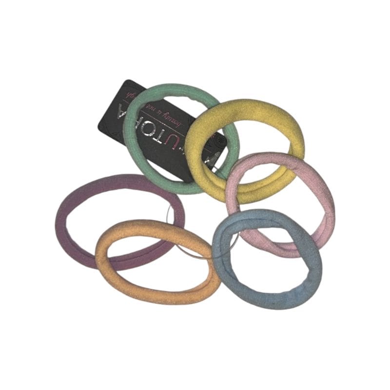 Γυναικεία λαστιχάκια μαλλιών κανονικού μεγέθους και σε διάφορες παστέλ αποχρώσεις. Διαθέτουν απαλό ματ ύφασμα με μεγάλη ελαστικότητα για δυνατό κράτημα, καθώς δεν ταλαιπωρούν την τρίχα των μαλλιών. Αναδεικνύουν και τα πιο απλά χτενίσματα. Η συσκευασία περιέχει 6 τεμάχια.